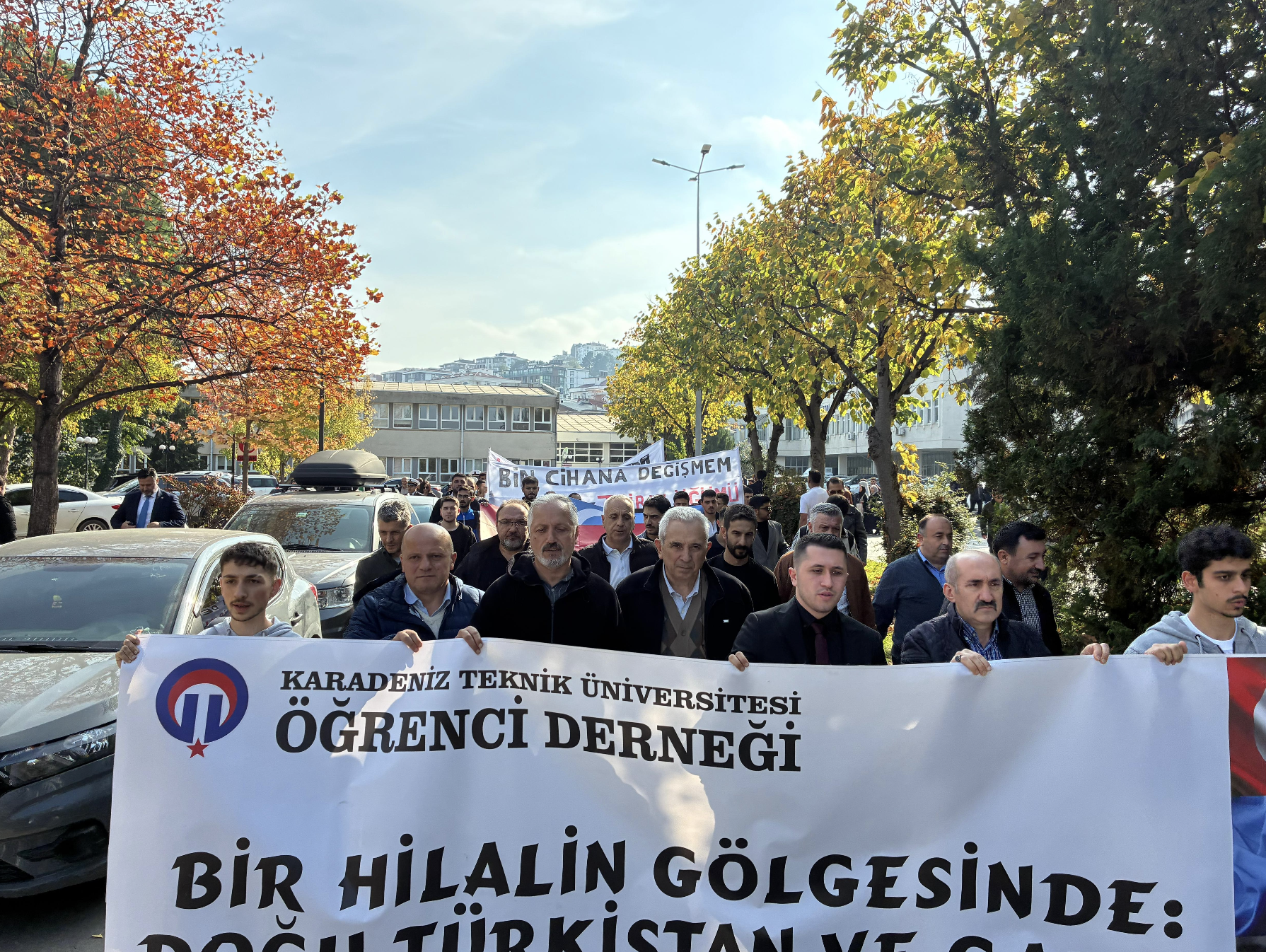 KTÜ.Kampüsü içinde yer alan İktisadi ve İdari Bilimler Fakültesi önünden başlayarak Rektörlük binası önüne kadar yürüyen öğrenciler adına Öğrenci Derneği Başkanı Kürşat Sivrikaya bir basın açıklaması yaptı. Başkan Sevrikaya şunları söyledi : “Bugün burada Doğu Türkistanlı soydaşlarımız ile Gazze’li ve din kardeşlerimiz için yüzlerce öğrenci arkadaşımızla birlikte bir yürüyüş gerçekleştirdik. Amacımız, Doğu Türkistan’da ve Gazze’de yıllardır süren zulme dikkat çekmek ve bu zulme sessiz kalmadığımızı göstermektir. Bizler Türk gençliği olarak, dünyanın neresinde bir mazlum varsa onun yanında, kim zulmediyorsa onun karşısındayız. Bu duruş bir siyaset değil, insanlık meselesidir,” ifadelerini kullandı.