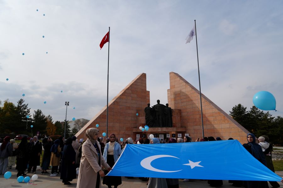 Atatürk Üniversitesi İlahiyat Fakültesi Yeni Eksen Öğrenci Kulübü, Doğu Türkistan’da yaşanan zulme dikkat çekmek amacıyla kampüsteki Gençlik Anıtı önünde mavi ve beyaz balonlarla eylem yaptı.