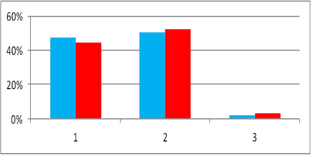 يۇقارقى گىرافىكتا كۆرگىنىڭىزدەك، ئىككى قىتىملىق (كۆك رەڭلىك 4-ئايدىكى، قىزىل رەڭلىك 12-ئايدىكى) راي سىناشقا قاتناشقۇچىلارنىڭ جىنسىدا چوڭ پەرىق يوق.